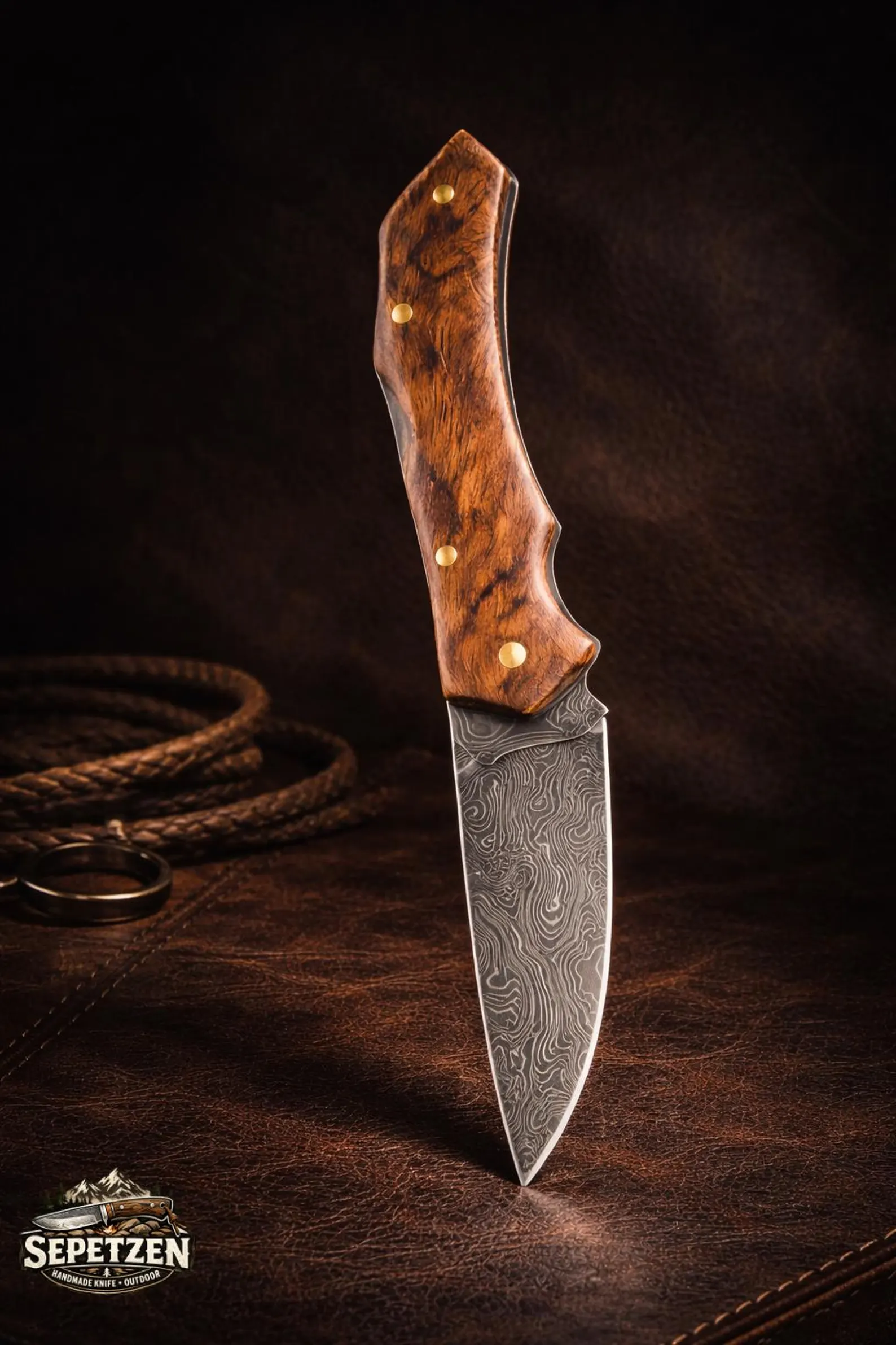 - Bıçak: Görünür katmanlı desene sahip, desenli kaynaklı Şam çeliği