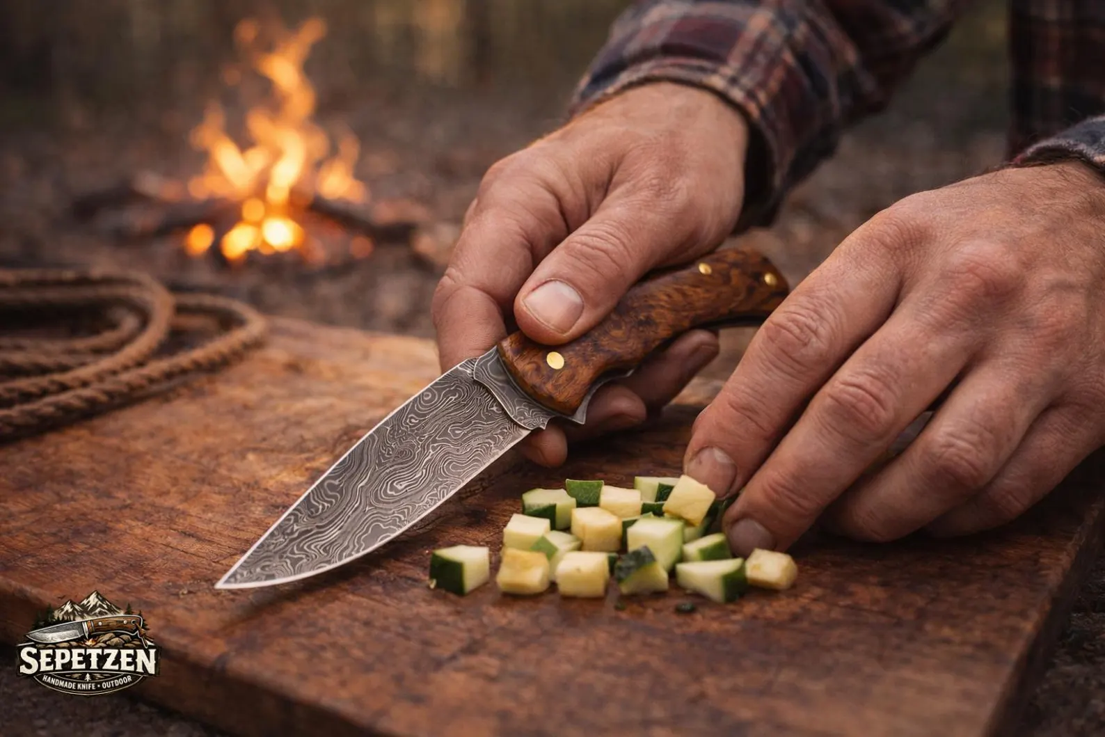Her sap, doğal ahşap damar yapısı sayesinde kendine özgü bir görünüme sahiptir. Bu da her bıçağı tamamen benzersiz kılar.