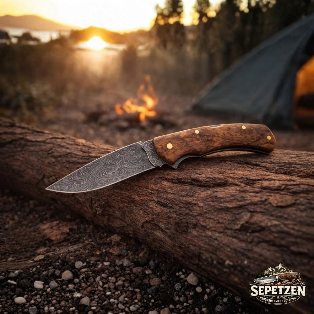 Premium El Yapımı Katlanır Bıçak - Sert Ağaç Saplı, Kamp ve Outdoor Kullanım